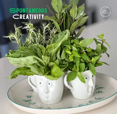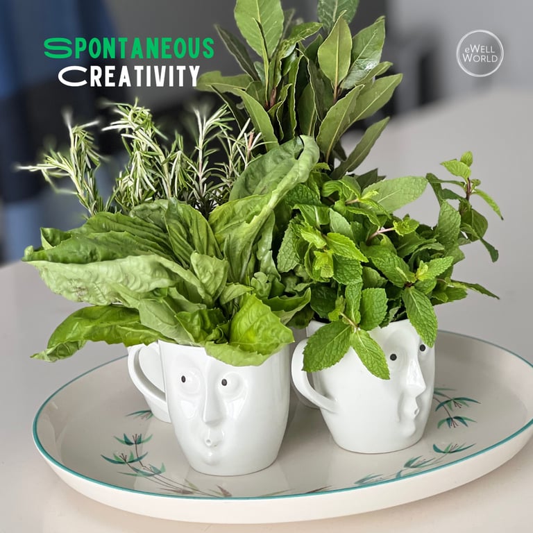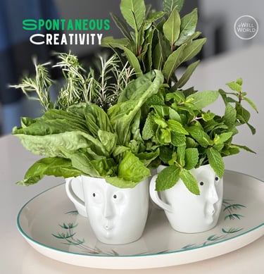 Spontaneity nudged my brain out of its “executive” mode — the one that plans, edits, and overthinks — into a more associative, playful one. That’s where the weird juxtapositions and surprising connections happened (hence, images of fresh herbs and coffee cups with fabulous expressions). That’s where new ideas started forming.